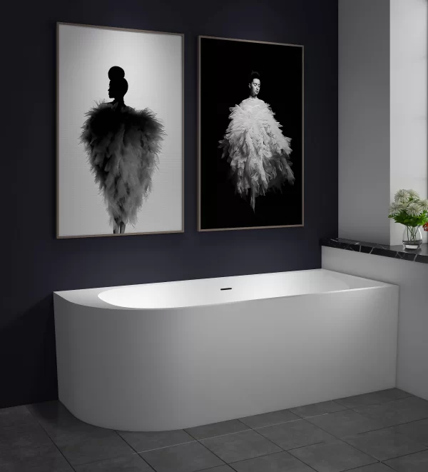 Het voordeel van acryl is dat het beter warmte vast houdt waardoor het bad luxer aanvoelt. De inhoud van het bad is 270 liter. Doordat het bad half vrijstaand is geeft het je badkamer een luxe uitstraling. Midden aan de muurkant van het bad zit een overloop die ervoor zorgt dat het bijna onmogelijk is om het bad te laten overstromen.